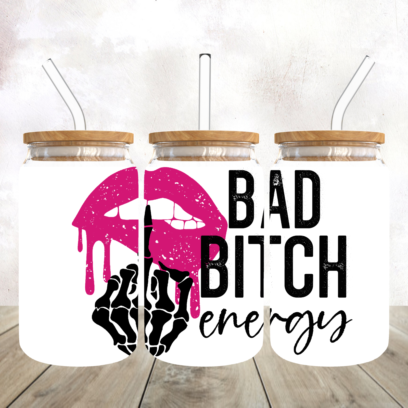 Bad Bitch Energy 16oz frosted glass libby tumbler - Comes with bamboo lid and straw