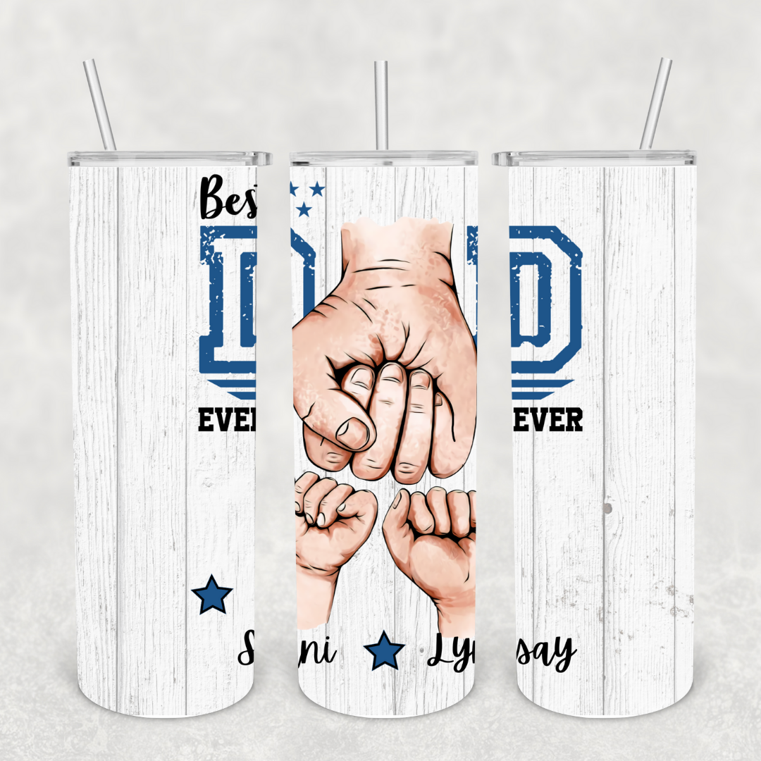 Best Dad Ever Fist Pump with Kids names 20oz Metal Tumbler