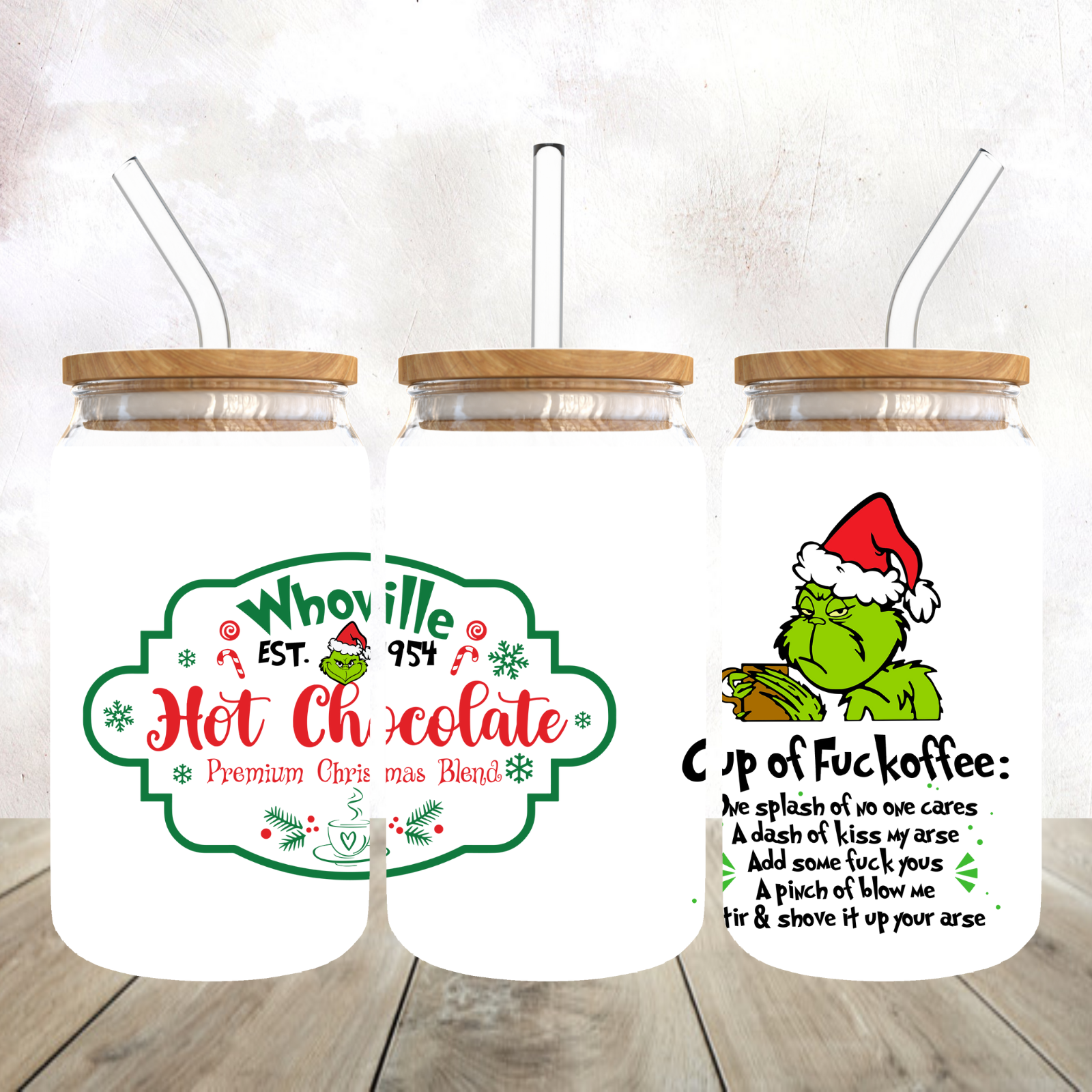 Mean Green Guy Cup of Fuckoffee 16oz frosted glass libby tumbler - Comes with bamboo lid and straw