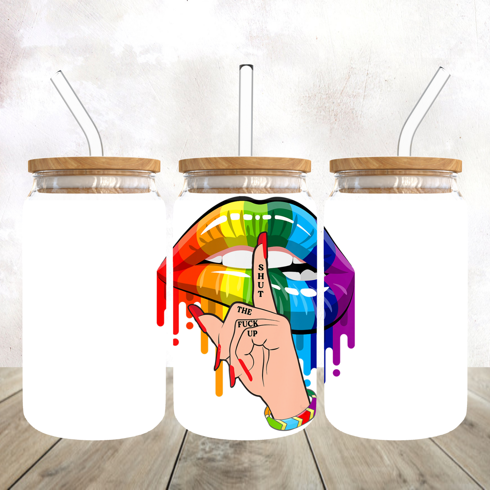 Shut the Fuck Up 16oz frosted glass libby tumbler - Comes with bamboo lid and straw