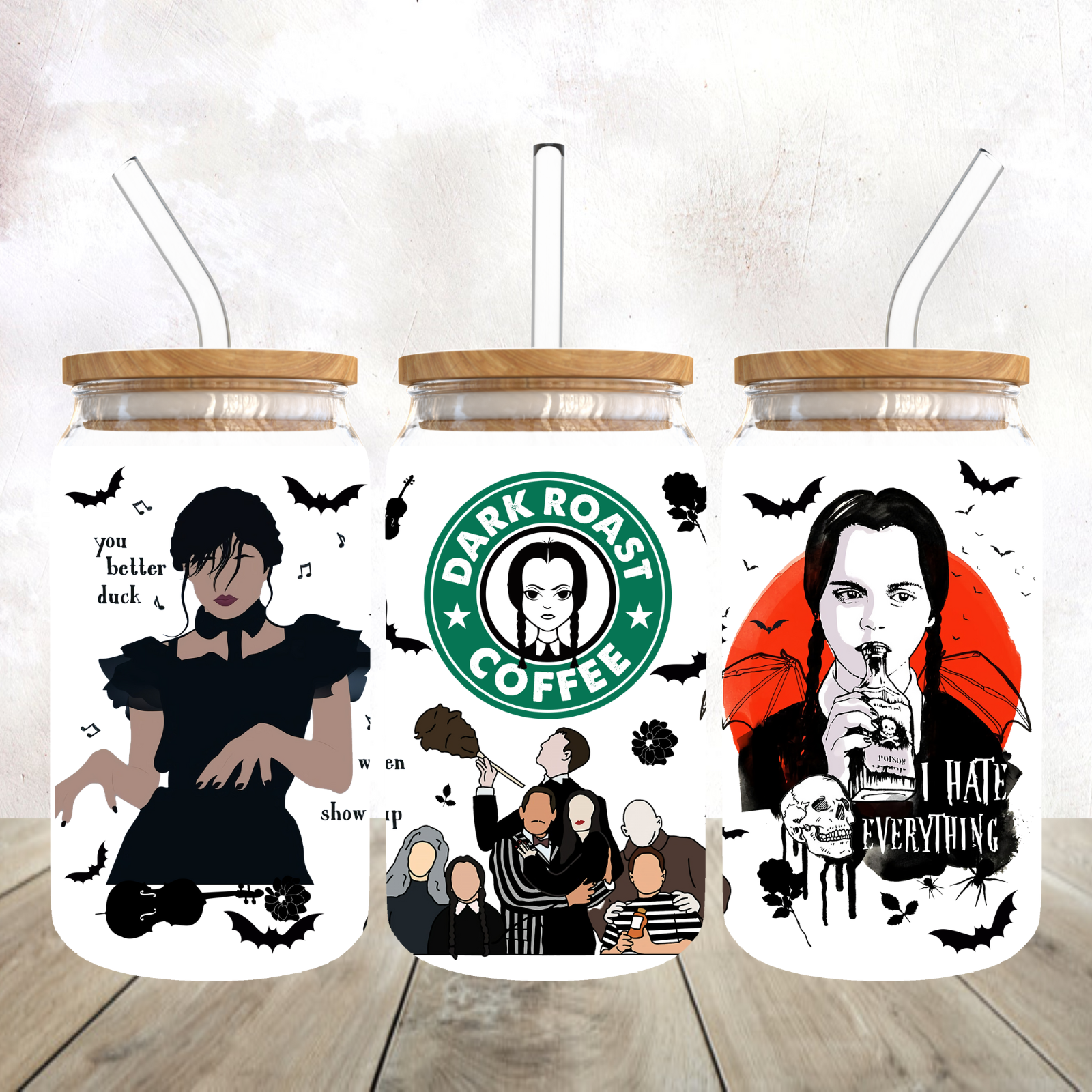 Wednesday 16oz frosted glass libby tumbler - Comes with bamboo lid and straw