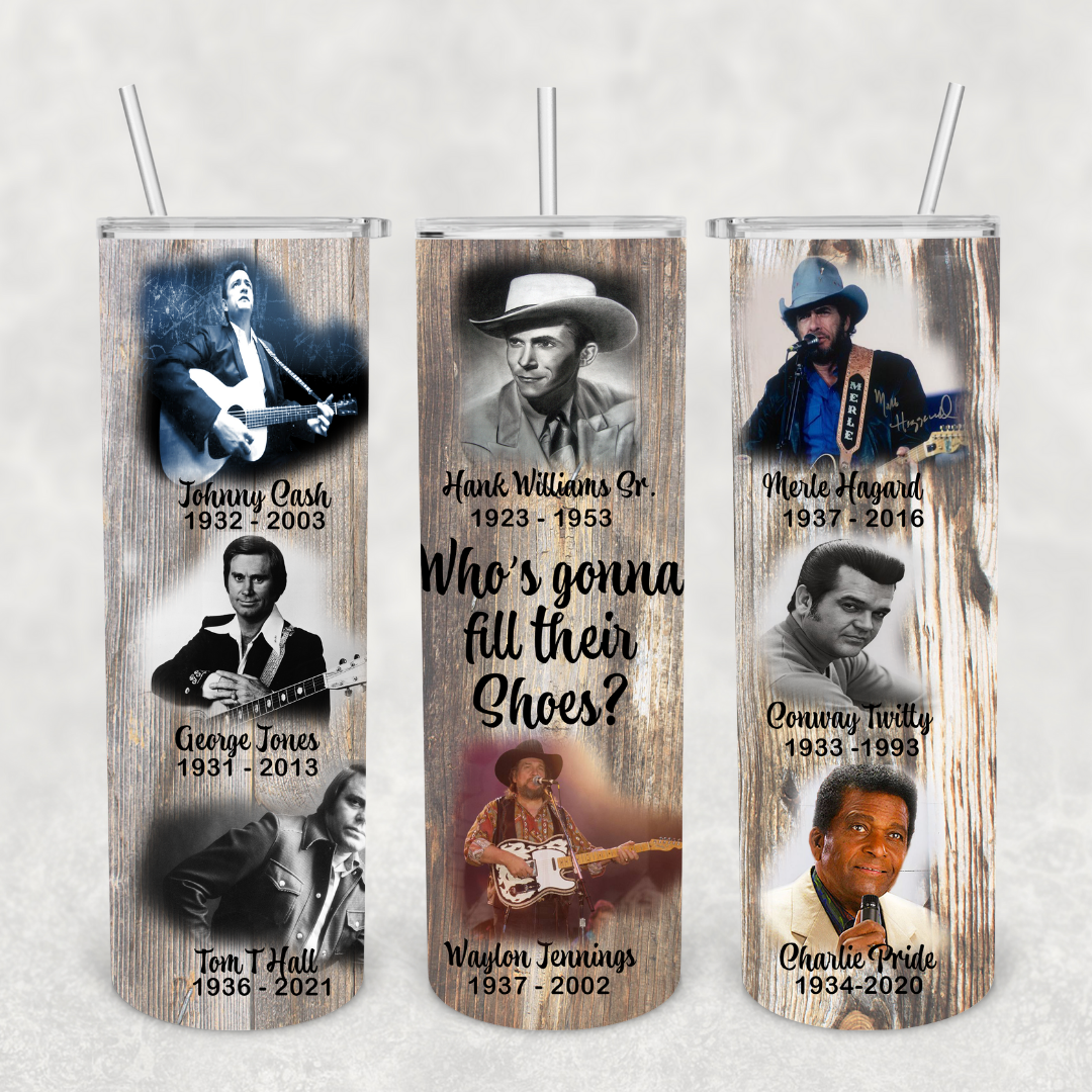 Enjoy your iced coffee or hot coffee with a legendary country music singers 20oz metal tumbler